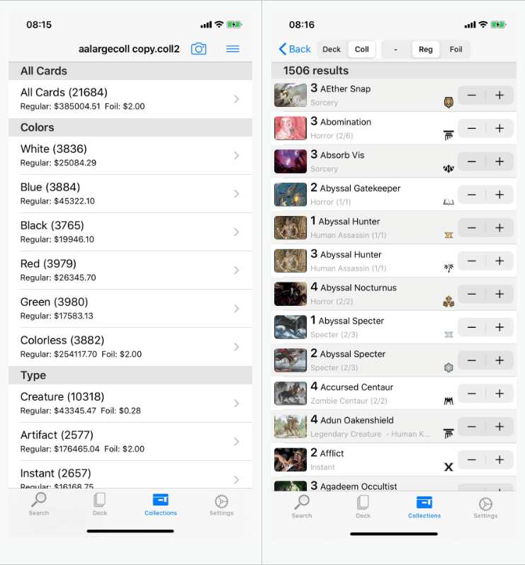 - Easily input and start tracking your collection of regular and foil cards