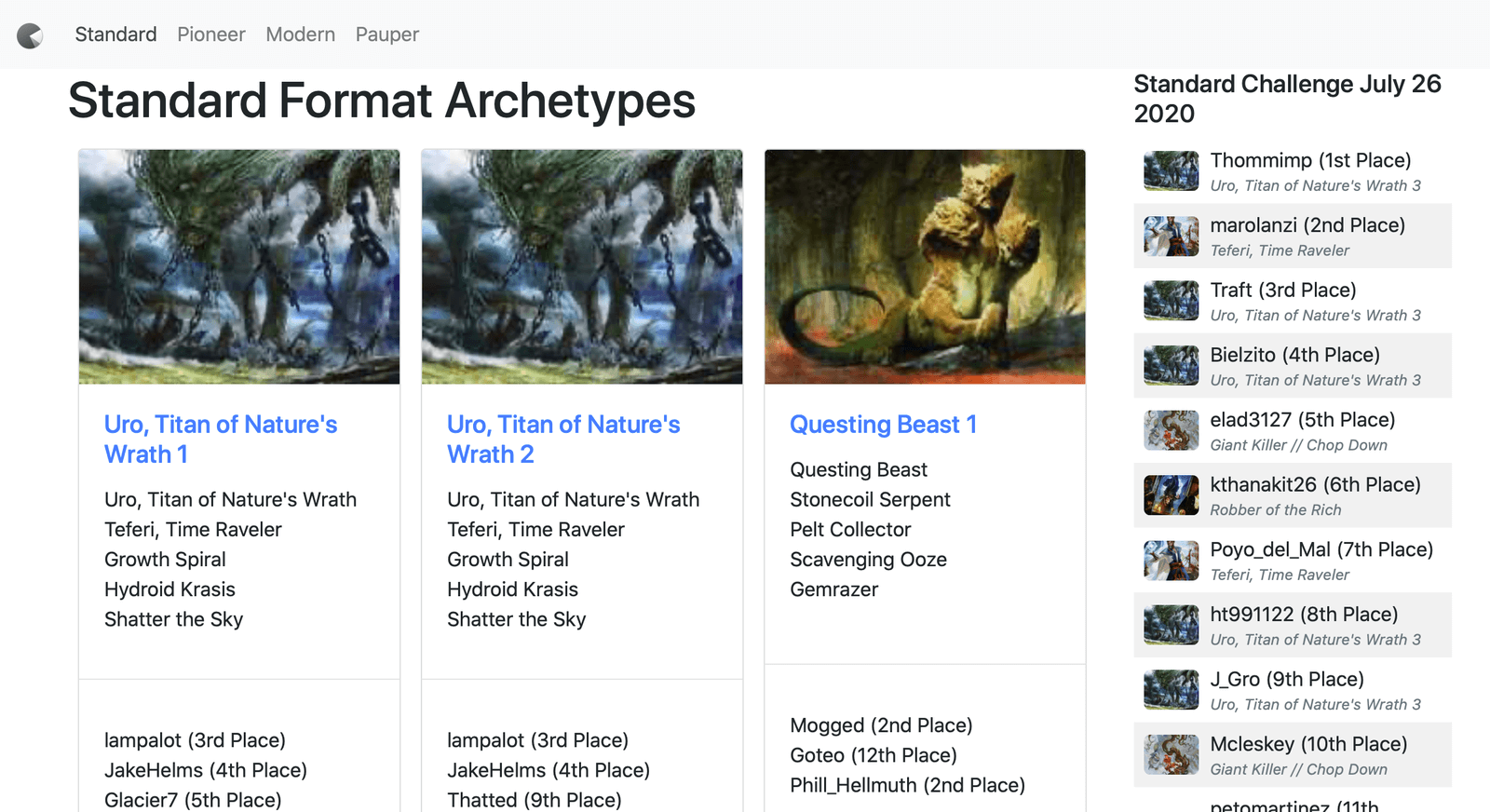 - Find the latest Standard, Modern, Pioneer and Pauper decks