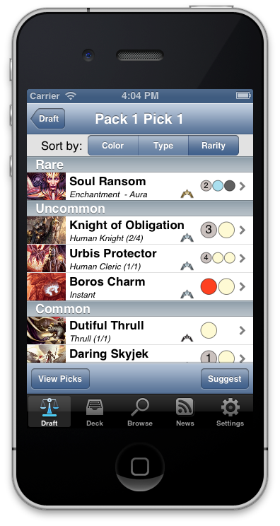 Gatecrash is now available on Decked Drafter on both the iOS and Android platforms, from the usual sources. These initial ratings represent Marlon and Tim’s initial ratings from the spoilers and prerelease play, and the updated ratings and writeups will be available in about two to three weeks time once they have had time to fully digest the new expansion.